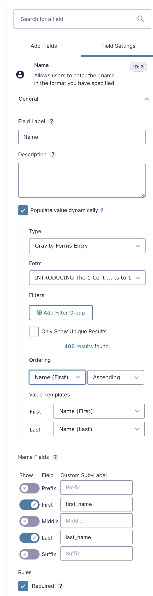 Here’s what I have in the advanced fields of the 2nd form for name: