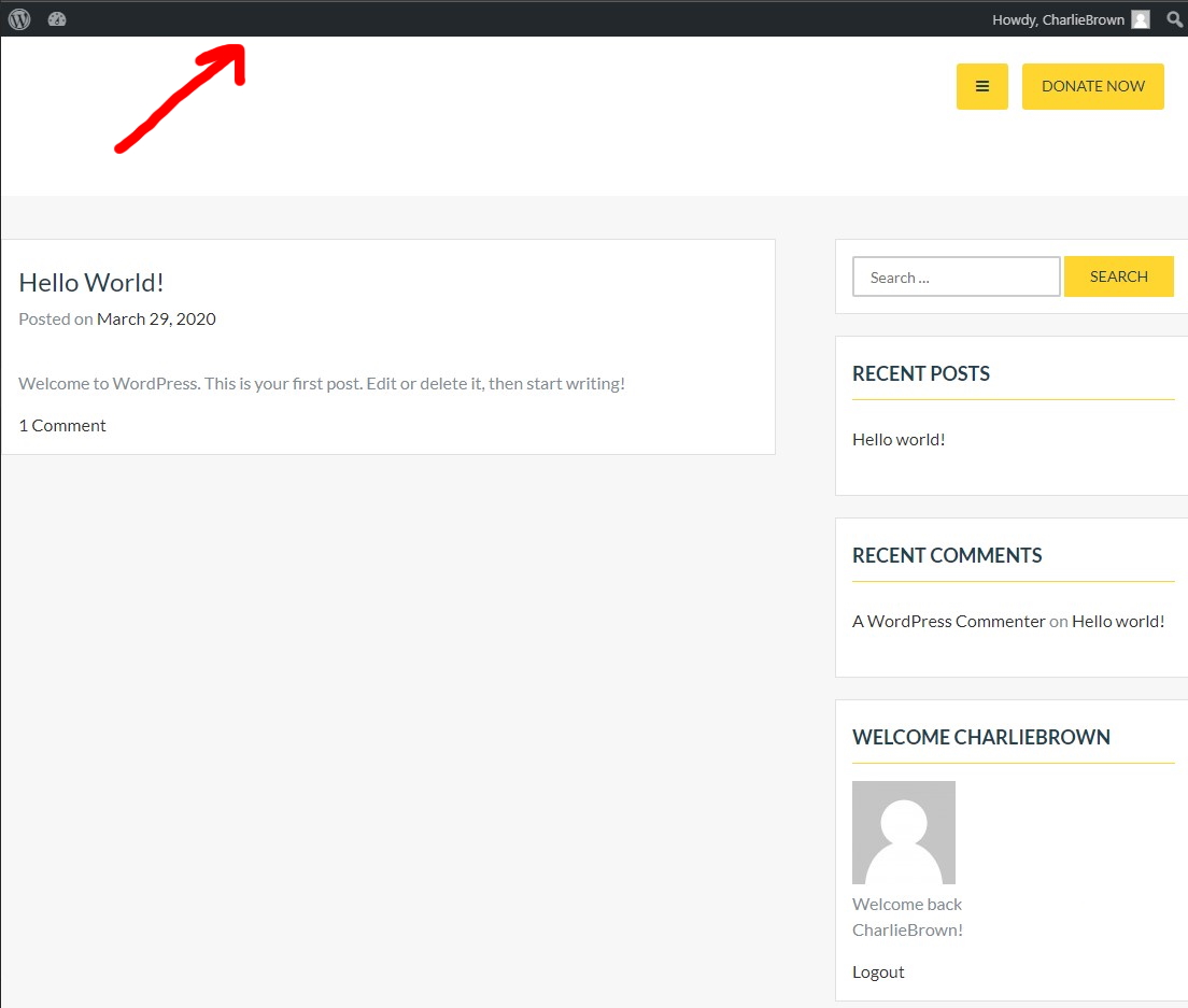 This image shows the WP user bar that should not be visible or accessible to this registered user.